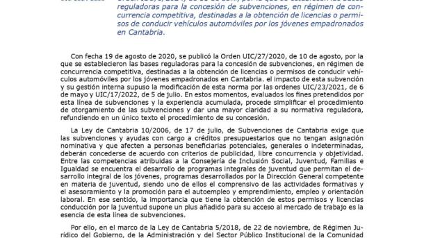 SUBVENCIONES PARA LA OBTENCIÓN DE LICENCIAS Y CARNET DE CONDUCIR https://boc.cantabria.es/boces/verAnuncioAction.do...